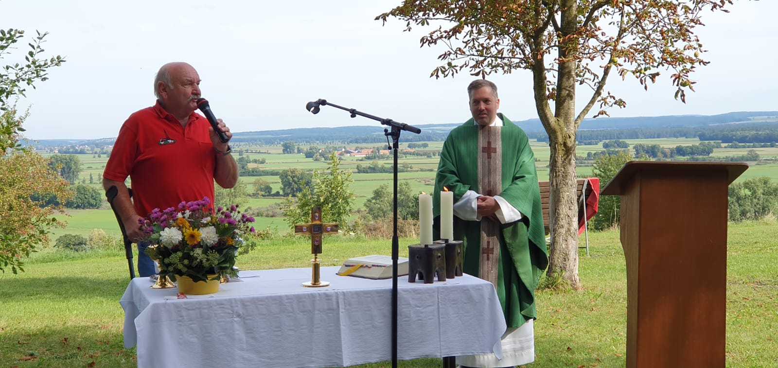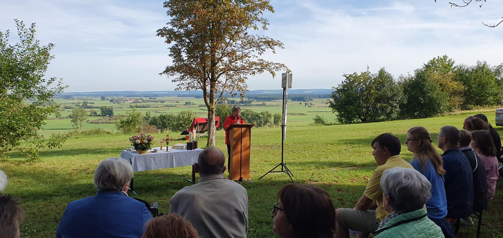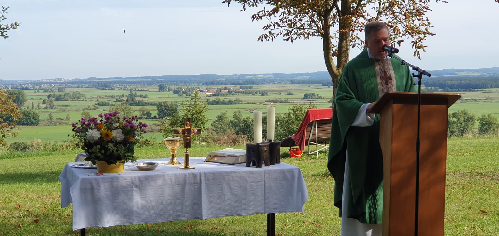 Traditionell versammeln sich die Gläubigen Anfang September auf dem Wennenberg. Das Christkönigsteam Fessenheim lud auch in diesem Jahr zur Bergmesse ein und viele Gläubige aus Nah und Fern feierten mit. Stadtpfarrer Benjamin Beck zelebrierte die Messe auf der Lichtung auf dem Wennenberg bei Alerheim. Die Bergmesse findet´i.d.R. jedes Jahr am ersten Sonntag im September statt. Einige Impressionen sehen Sie oben.