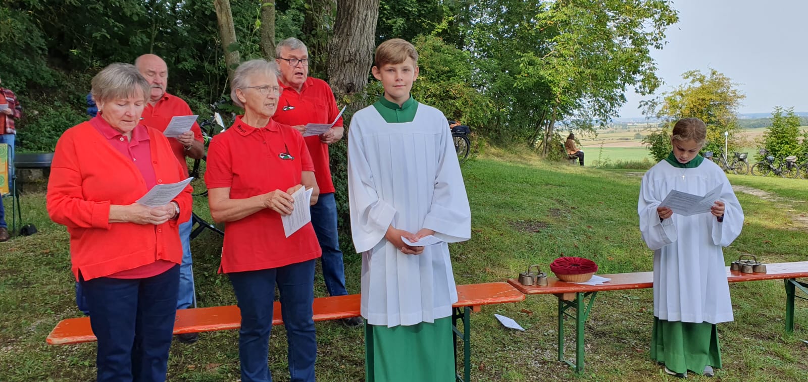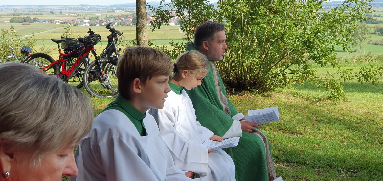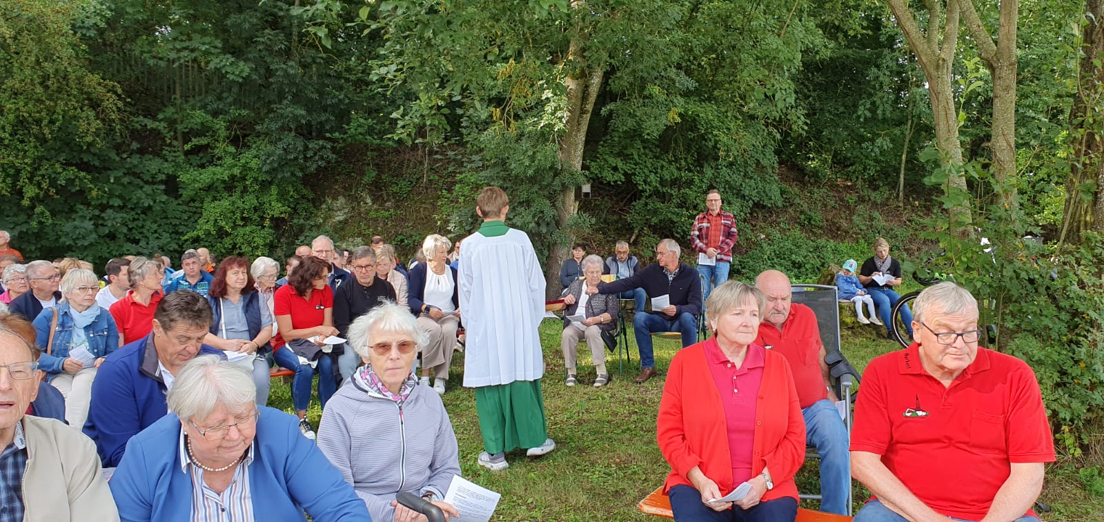 Traditionell versammeln sich die Gläubigen Anfang September auf dem Wennenberg. Das Christkönigsteam Fessenheim lud auch in diesem Jahr zur Bergmesse ein und viele Gläubige aus Nah und Fern feierten mit. Stadtpfarrer Benjamin Beck zelebrierte die Messe auf der Lichtung auf dem Wennenberg bei Alerheim. Die Bergmesse findet´i.d.R. jedes Jahr am ersten Sonntag im September statt. Einige Impressionen sehen Sie oben.