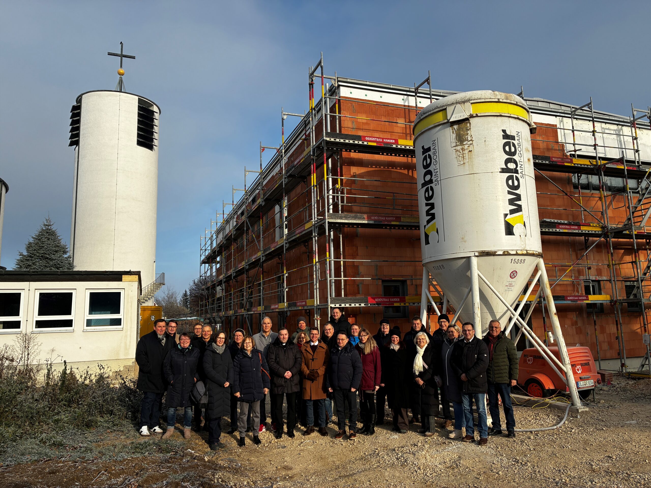 Im November 2025 haben wir bei einer Baustellenbegehung das neue Forum und die Kita St. Josef genauer unter die Lupe genommen. Zahlreiche Projektbeteiligte und Gäste aus dem kirchlichen und sozialen Bereich waren eingeladen. Die Verputzarbeiten sind mittlerweile abgeschlossen, der Estrich ist verlegt und wir befinden uns auf der Zielgeraden Richtung Segnung.
